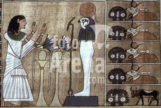 akg337977 Egyptian, Ptolemaic period. Text and illustration for the Book of the Dead (writings about life after death). Painting on papyrus. Turin, Museo Egizio. Museum: Turin, Museo Egizio.