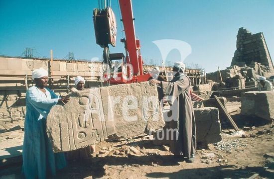 akg243337 Karnak (Egypt), Amun-Temple. Excavation campaign of Centre Franco-Egyptien: reconstruction of the 4th pylon of the Amun Temple. Photo, 1985.