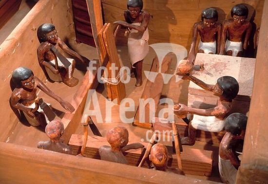 akg270249 Egyptian, Middle Kingdom, 11th dynasty, reign of Mentuhotep III, c. 1990 BC. Model of a carpenter's workshop with carpenters working. Wood, painted, height 26cm, length 93cm, width 52cm. From the tomb of Meketre, Dayr al-Bahri, Thebes-West (TT 280). Cairo, Egyptian Museum. Museum: Cairo, Egyptian Museum.