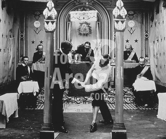 akg297592 Society / Freemasonry:. Initiation in a Masonic Lodge. (Reconstruction). Photo, undated, 2nd half of 19th Century (Maison Bayard), 8.5 × 10cm. (Information from the museum: Plaque de daguérréotypie, fin du XIX siècle). Paris, Musée de la Franc-maçonnerie. Museum: Paris, Musée de la Franc-maçonnerie.