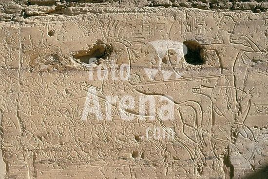 akg423129 Kalabsha (Upper Egypt), rock temple of Bêt el-Wâli - Beit el-Wali (New Kingdom, 19th dynasty, time of Ramses II, 1279-1213 B.C.; moved 40 km to the north due to construction of Nasser Lake and dam.). - The king in a chariot. Relief. Photo.