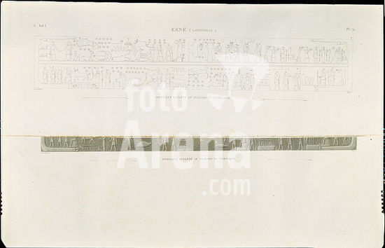akg811061 Dendera (Ägypten), Hathortempel (ptolem. Zeit). /-"Dendera (Tentyris) / Détails de deux murs d'entrecolonnement du Portique et basreliefs recueillis dans le Grand Temple"-/ Kupferst. nach André Dutertre (1753-1842) und Jean Baptiste Le Père (1761-1844). Aus: Description de l'Égypte, Paris 1809 ff., A. Bd. IV, Tf.13. Museum: Private Collection., KAIRO.