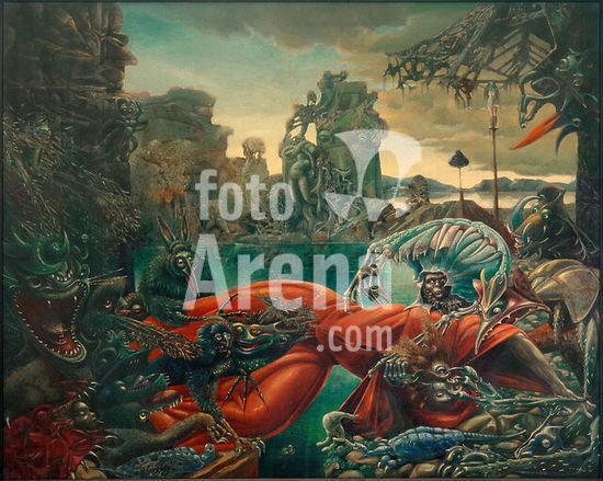 akg8223171 Max Ernst; 1891-1976. "Temptation of Saint Anthony", 1945. Oil on canvas, 108 × 128 cm. Duisburg, Wilhelm-Lehmbruck-Museum. Museum: Madrid, Museo Thyssen-Bornemisza. Copyright: © Max Ernst. This artwork is not in the public domain. Additional copyright clearance may be required before use of this image.