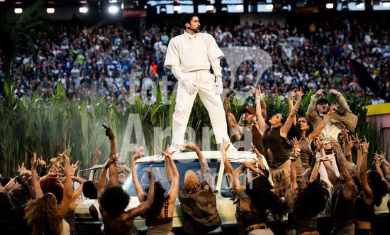 ny090226181612 Bad Bunny performs during the Super Bowl LX halftime show at Levi's Stadium in Santa Clara, Calif., on Sunday, Feb. 8, 2026. Bad BunnyÕs Super Bowl halftime performance, a meaningful moment for many Puerto Ricans, drew from his Grammy-winning album ÒDeb? Tirar M?s FotosÓ and other hits. (Doug Mills/The New York Times/Fotoarena)
