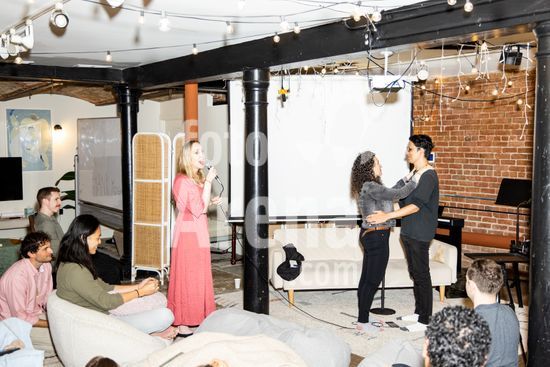 ny060126211510 Organizer Ann Pierce, left, encourages Stefani Karp and Faraz Abidi, a couple who just met on a dating app, to slow-dance in front of a crowd as part of their first date, during the Love Symposium in San Francisco, on Nov. 15, 2025. A group of tech executives, app developers and Silicon Valley philosophers is seeking to streamline the messy matters of the heart. (Jason Henry/The New York Times/Fotoarena)