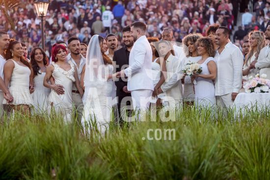 ny240226214411 FILE Ñ Eleisa Aparicio and Thomas Wolter, two registered nurses from the greater Los Angeles area, get married live onstage as singer Bad Bunny performs during the Super Bowl LX halftime show at Levi's Stadium in Santa Clara, Calif., on Sunday, Feb. 8, 2026. The wedding of Aparicio and Wolter was seen by millions, but in their first interview, the newlyweds share the story of how they got to Santa Clara, Calif., with Bad Bunny signing as their witness. (Doug Mills/The New York Times/Fotoarena)