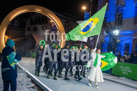 ny130226114612 The Olympic skeleton racer Nicole Silveira leads out the members of Team Brazil during the opening ceremony of the 2026 Milan Cortina Winter Olympics, in Cortina d'Ampezzo, Italy on Feb. 6, 2026. Silveira has the unique distinction of being married to one of her competitors ? Kim Meylemans of Belgium. (James Hill/The New York Times/Fotoarena)