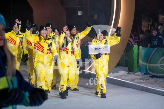 ny130226114712 The Olympic skeleton racer Kim Meylemans leads out the members of Team Belgium during the opening ceremony of the 2026 Milan Cortina Winter Olympics, in Cortina d'Ampezzo, Italy on Feb. 6, 2026. Silveira has the unique distinction of being married to one of her competitors ? Nicole Silveira of Brazil. (James Hill/The New York Times/Fotoarena)