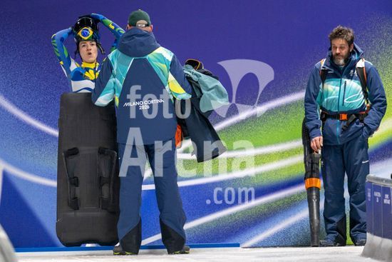 ny130226114514 The Olympic skeleton racer Nicole Silveira of Brazil, right, trains in Cortina d'Ampezzo, Italy on Feb. 7, 2026. Silveira has the unique distinction of being married to one of her 2026 Winter Olympics competitors ? Kim Meylemans of Belgium. (James Hill/The New York Times/Fotoarena)