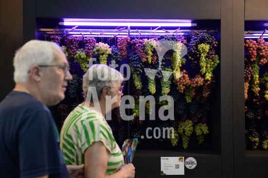 2896757 Imagens da movimentação de visitantes na 95ª Festa da Uva, no Parque de Eventos Mário Bernardino Ramos, os Pavilhões da Festa da Uva, nesta segunda-feira, um evento de gastronomia, cultura e tradição italiana-gaúcha, com espetáculos cênicos e shows. Casal de visitantes passeando pelo corredor de uvas premiadas na exposição da Festa. Caxias do Sul, RS, (02).