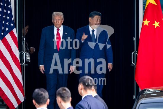 President Donald Trump and Xi Jinping, ChinaÕs top leader, exit together after their meeting in Busan, South Korea, on Thursday, Oct. 30, 2025. Following the meeting, ChinaÕs Ministry of Commerce said it would suspend for a year the export controls it issued on Oct. 9. However, China made no public commitment to retreat from earlier limits. (Haiyun Jiang/The New York Times/Fotoarena)
