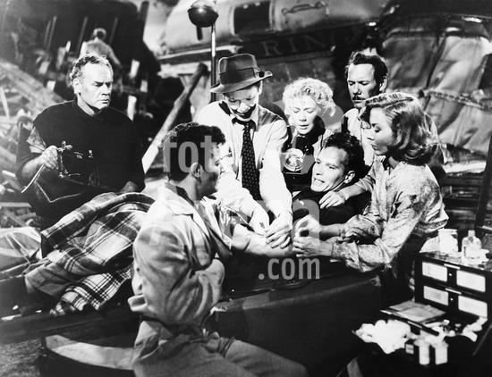 MBDGRSH_EC076 THE GREATEST SHOW ON EARTH, from front left: Cornel Wilde, James Stewart, Betty Hutton, Charlton Heston, John Ridgely, Gloria Grahame, 1952