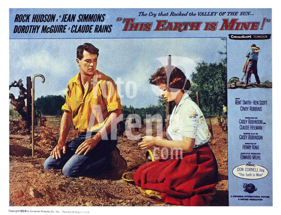 MSDTHEA_EC003 THIS EARTH IS MINE, US lobbycard, from left: Rock Hudson, Jean Simmons, 1959