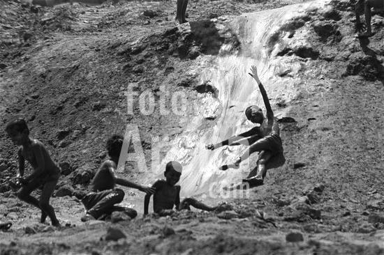 925_02_MW003482 In a constraction area children make natural slipper from a piled up mud