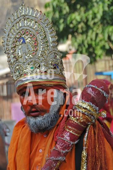 925_07_MW023212 A devotee appears as a character from the Hindu religious epics, Ramayan, Mahabharata, Kumbh Mela