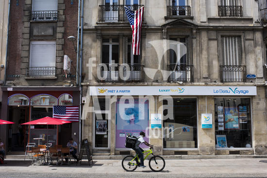 ny240619175804 American flags displayed on a street before the Women's World Cup round of 16 match between the U.S. and Spain in Reims, France, June 24, 2019. The U.S. won 2-1 to advance into the quarterfinals and face France. (Pete Kiehart/The New York Times/Fotoarena)