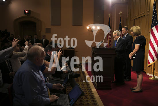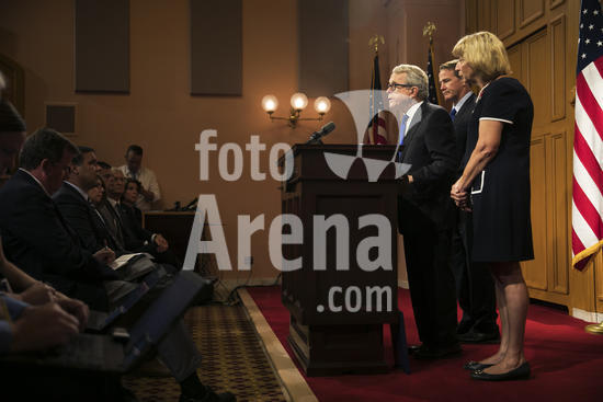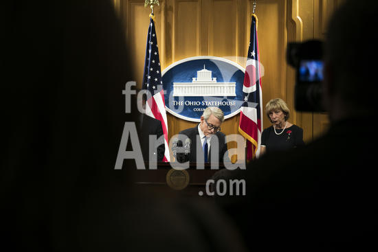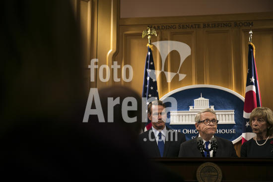 ny060819141304 Gov. Mike DeWine of Ohio makes an announcement, proposing adopting a version of a ?red flag law,? which would allow the authorities to take firearms from a person deemed by a court to be dangerous, at the Statehouse in Columbus, Ohio, on Tuesday, Aug. 6, 2019. DeWine's wife, Frances DeWine is right. (Maddie McGarvey/The New York Times/Fotoarena)
