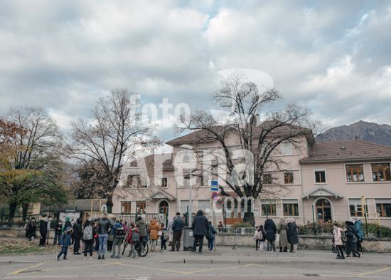ny221120233904 **EMBARGO: No electronic distribution, Web posting or street sales before MONDAY 3:01 A.M. ET NOV. 23, 2020. No exceptions for any reasons. EMBARGO set by source.** Outside the Louis Pasteur elementary school in Albertville, France, on Nov. 16, 2020. When France held a tribute to a teacher killed after a class on freedom of expression, the police interrogated at least 14 students over comments flagged as inappropriate. (Andrea Mantovani/The New York Times/Fotoarena)