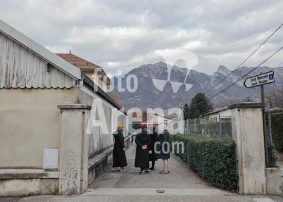 ny221120234704 **EMBARGO: No electronic distribution, Web posting or street sales before MONDAY 3:01 A.M. ET NOV. 23, 2020. No exceptions for any reasons. EMBARGO set by source.** Mukaddes Akdag, second from right, the mother of one of the detained boys, chats with neighbors near the Louis Pasteur elementary school in Albertville, France, on Nov. 16, 2020. When France held a tribute to a teacher killed after a class on freedom of expression, the police interrogated at least 14 students over comments flagged as inappropriate. (Andrea Mantovani/The New York Times/Fotoarena)