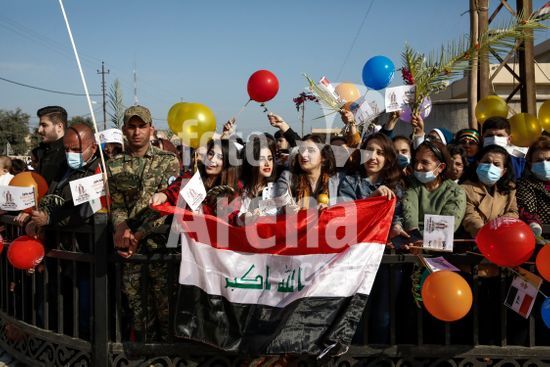 ny080321130505 People welcome Pope Francis to the Church of Immaculate Conception in Qaraqosh, Iraq, on Sunday, March 7, 2021. Pope Francis, lamenting that he felt like he was in "prison" under lockdown in the Vatican, said on Monday that he had wrestled with his decision to visit Iraq in the midst of a pandemic, but put the fate of the Iraqis who flocked to see him in God?s hands. (Ivor Prickett/The New York Times/Fotoarena)