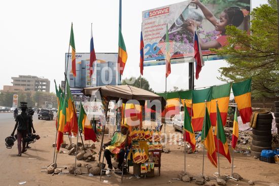 ny140422111005 A flag vendor with Malian and Russian flags in Bamako, Mali, March 15, 2022. Decades after independence, many African countries are increasingly troubled by the ongoing influence of their former colonial power. (Nicolas Remene/The New York Times/Fotoarena)