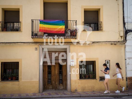 ny220723141606 FILE ? A Pride flag hanging on a house in Náquera, Spain on July 1, 2023. The newly elected mayor from the Vox party in the town of Náquera has ordered the removal of Pride flags from municipal buildings. (Samuel Aranda/The New York Times/Fotoarena)