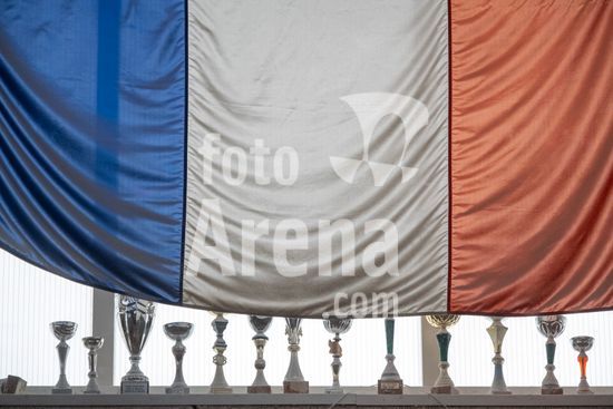 ny310724143013 A French flag and trophies at the Avoine Beaumont gymnastics club in Avoine, France, June 5, 2024. A bitter fight with the French gymnastics federation threatened the Olympic hopes of Kaylia Nemour Ñ dual nationality offered a way out. (James Hill/The New York Times/Fotoarena)
