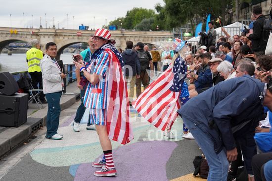 ny260724153110 Fans in American flag outfits during the opening ceremony of the 2024 Paris Summer Olympics in Paris, on Friday, July 26, 2024. (Weiyi Cai/The New York Times/Fotoarena)