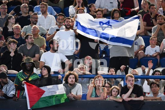 ny240724210710 Attendees hold Israeli and Palestinian flags at Parc des Princes during Israel?s soccer match with Mali, at the 2024 Summer Olympics in Paris on July 24, 2024. France has promised an unusually heavy blanket of security for Israeli athletes at the Games. In its first test, it pulled out all the stops. (James Hill/The New York Times/Fotoarena)