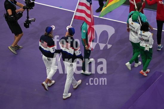 ny110824165312 The United States flag bearers Katie Ledecky, left, a swimmer, and Nick Mead, a rower, during the parade of athletes during the closing ceremony of the 2024 Paris Summer Olympics at the Stade de France in Saint-Denis, France, on Sunday, Aug. 11, 2024. (Chang W. Lee/The New York Times/Fotoarena)