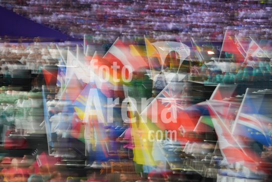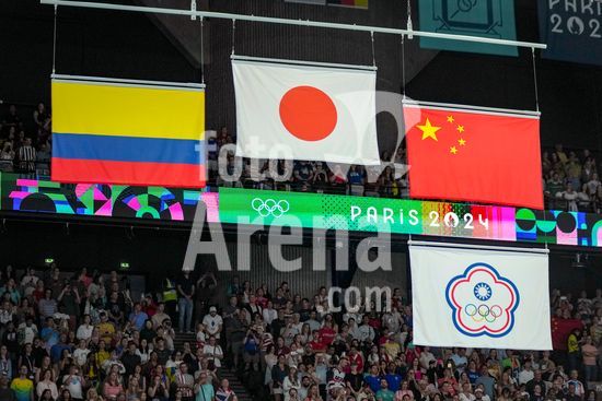 ny100824153812 Flags of Colombia, Japan, China and Chinese Taipei hang in an arena during the men?s artistic gymnastics individual horizontal bar final at the 2024 Summer Olympics in Paris on Monday, Aug. 5, 2024. The Olympics have long been a stage for political expression, for athletes who take the opportunity. Some do, while others choose to focus strictly on their sport.(Chang W. Lee/The New York Times/Fotoarena)