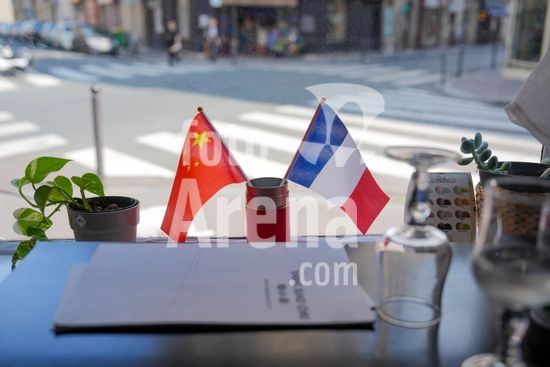 ny060824114912 French and Chinese flags on a table at Yang Xiao Chu, a petite restaurant near the table tennis venue in the 15th arrondissement of Paris which has become an unofficial clubhouse for athletes, team officials and fans alike, on Aug. 2, 2024. Thanks to strong word of mouth and social media platforms like Little Red Book, this unassuming Sichuan restaurant has become a bustling unofficial clubhouse for the stars of table tennis and fans alike. (Weiyi Cai/The New York Times/Fotoarena)