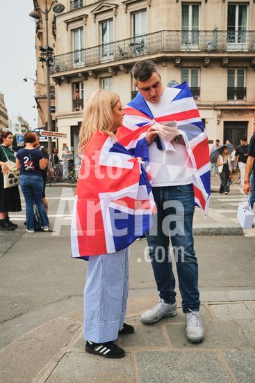 ny010824161715 People wear United Kingdom flags draped over their shoulders in Paris during the opening weekend of the Summer Olympics in July 2024. (Simbarashe Cha/The New York Times/Fotoarena)