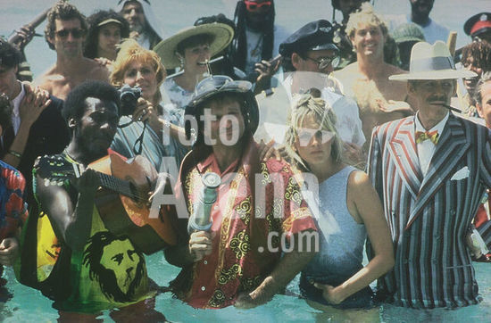alb350796 ROBIN WILLIAMS, PETER O'TOOLE and JIMMY CLIFF in CLUB PARADISE (1986), directed by HAROLD RAMIS. English title: CLUB PARADISE. Portuguese title: CLUBE PARAÍSO.