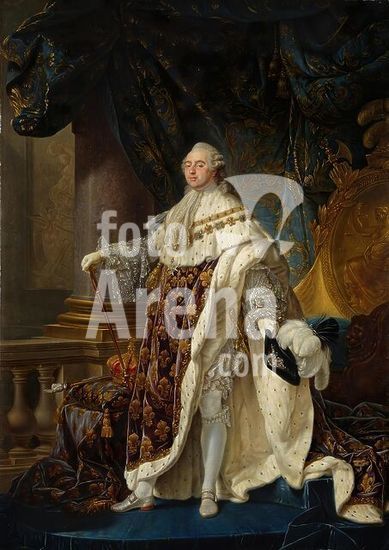 alb2070856 Antoine-François Callet / 'Louis XVI of France', 1778-1779, French School, Oil on canvas, 275 cm x 193 cm, P02238. Museum: MUSEO DEL PRADO, MADRID, SPAIN.