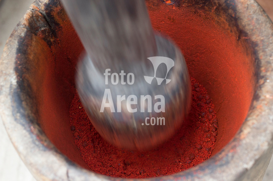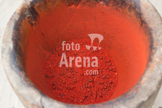 1274069 Urucum socado. Urucu, ou urucum, é o fruto do urucuzeiro ou urucueiro (Bixa orellana), àrvore nativa na América tropical. Os frutos são cápsulas com espinhos maleáveis, que se tornam vermelhas quando ficam maduras. Então se abrem e revelam pequenas sementes dispostas em série, de trinta a cinquenta por fruto, envoltas em arilo também vermelho.