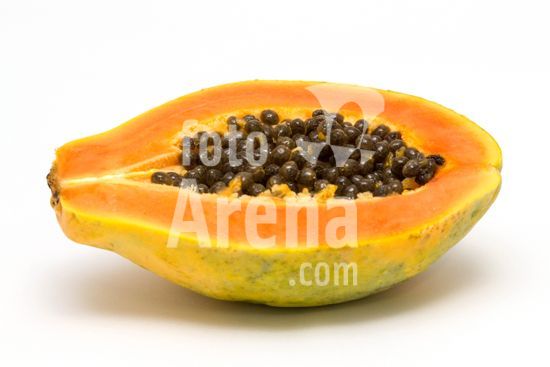2089362 Mamão papaya maduro cortado ao meio com sementes, São Paulo SP, BRasil.
