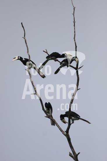 00439271 Malabar Pied-Hornbill (Anthracoceros coronatus) group, Borneo, Malaysia