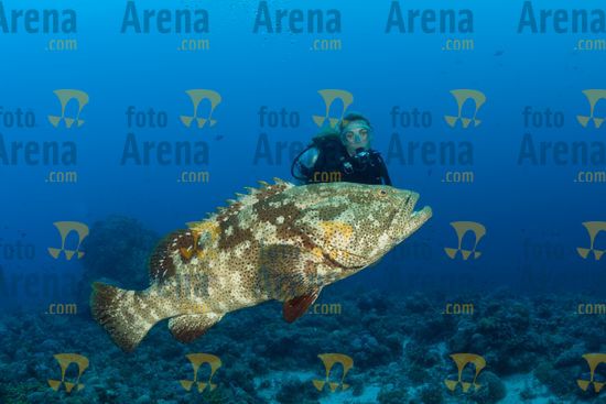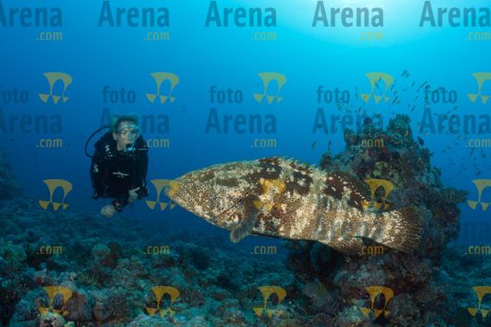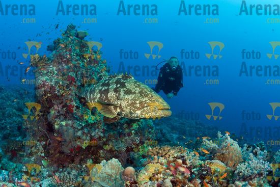 759-12475 Scuba Diver and Malabar Grouper, Epinephelus malabaricus, Red Sea, Ras Mohammed, EgyptLegenda da Fotoarena:Scuba Diver and Malabar Grouper, Epinephelus malabaricus, Red Sea, Ras Mohammed, Egypt