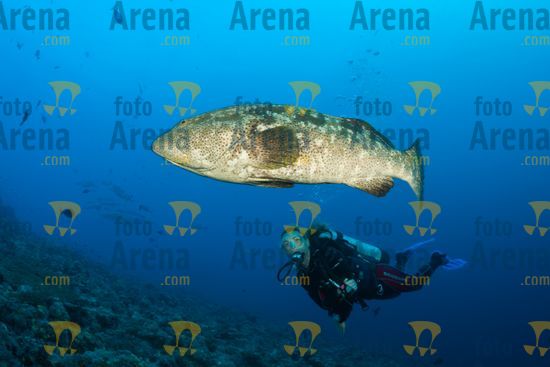 759-12477 Scuba Diver and Malabar Grouper, Epinephelus malabaricus, Red Sea, Ras Mohammed, EgyptLegenda da Fotoarena:Scuba Diver and Malabar Grouper, Epinephelus malabaricus, Red Sea, Ras Mohammed, Egypt