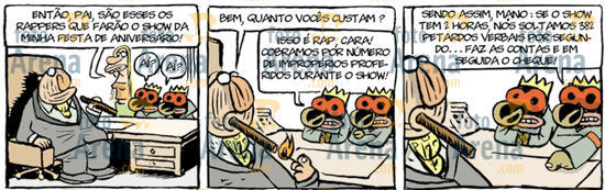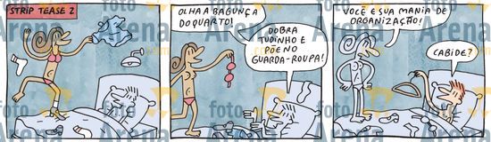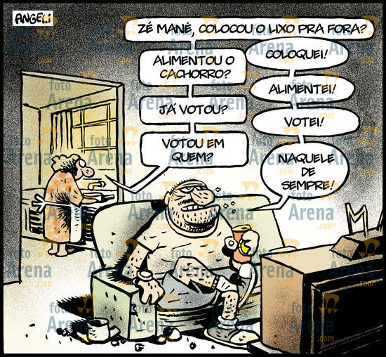 *-*-*-*-*HQ*-*-*-*-*ADÃO ITURRUSGARAI, SOCIEDADE, HQ, FOLHATEEN, 2011.DiálogoEnquanto isso, os homens...Cada vez mais mulheres conquistam cargos importantes. Elas vão sozinhas aos bares e discutem sobre futebol. Cada vez mais mulheres pilotam aviões. Agora elas também apitam jogos de futebol. Usam cabelo curto e algumas já fumam cachimbo. Enquanto isso, os homens.- Amor, precisamos conversar!- Não enche, porra!!Hoje as mulheres propõem orgias.- Vai a Sílvia, o Zé, a Luisa, a Jô, o Régis...Enquanto isso, os homens...- Não conseguiria transar com outras, eu te amo!Elas não se importam mais com o "excesso" de gordurinhas. Elas chegam junto!- Vou te escangalhar!Hoje as mulheres arrotam e se coçam! Elas não acordam mais à noite para cuidar do bebê. Hoje elas se beijam entre elas. Estão mais livres. Enquando isso, os homens...- Mania feia! Transa e vai dormir!- Não torra!Elas nem entram na cozinha. Enquanto isso, os homens...- Vamos, Serafim!- Peraí! Só falta o creme para olheiras!
