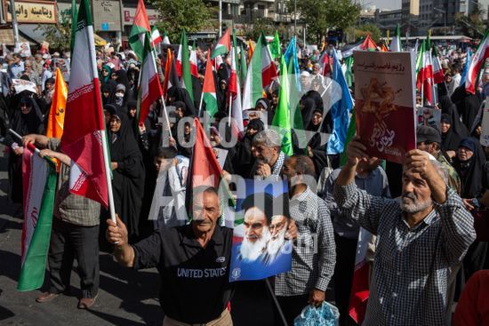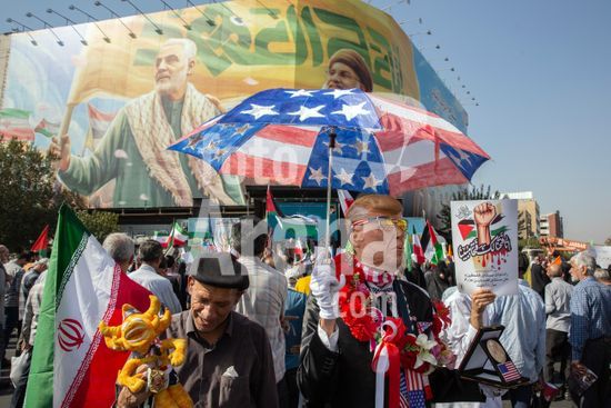 ny101025121514 A man wears a shirt reading ÒUnited StatesÓ as he joins in a march in a demonstration of support for Palestinians living in Gaza in Tehran, Iran, on Friday, Oct. 10, 2025. Iran, a longtime backer of Hamas, has signaled its tacit acceptance of the Palestinian militant groupÕs cease-fire deal with Israel, which will include the release of all remaining hostages in Gaza. (Arash Khamooshi/The New York Times/Fotoarena)