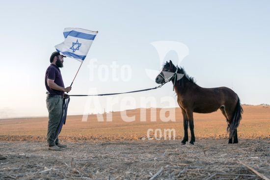 ny101025153512 A man holds the flag of Israel while training his donkey in a field not far from the border with Gaza, near Meflasim, Israel, on Friday, Oct. 10, 2025. The Israeli military said on Friday that a cease-fire had come into effect at noon as its soldiers were repositioning themselves within Gaza, a step that mediators hope will lead to the end of the two-year war. (Amit Elkayam/The New York Times/Fotoarena)