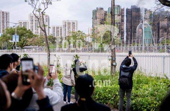ny071225142415 FILE ? People watch the fire at the Wang Fuk Court apartment complex in Hong Kong, Nov. 27, 2025. The Hong Kong national security police arrested a 71-year-old man on Saturday, accusing him of publishing videos with ?seditious intention? online and inciting hatred of the government in the wake of an apartment complex fire that killed at least 159 people. (Billy H.C. Kwok/The New York Times/Fotoarena)