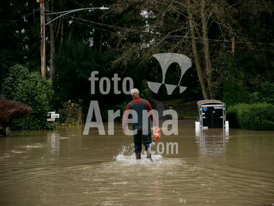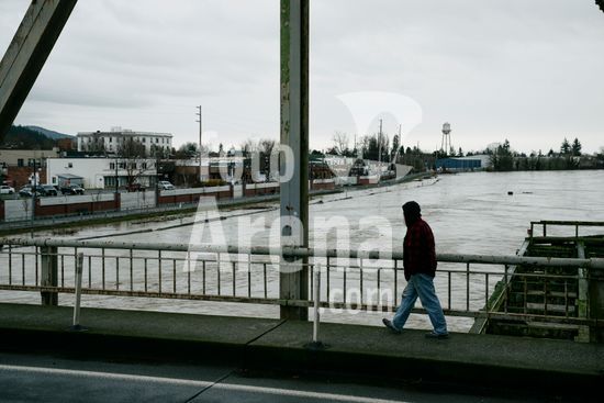 ny111225161912 A man crosses the Division Street Bridge as the rising Skagit River passes near downtown Mount Vernon, Wash., on Thursday, Dec. 11, 2025. The river is forecast to crest on Friday morning after several days of heavy rain pushed waterways in the region to record levels. (Grant Hindsley/The New York Times/Fotoarena)