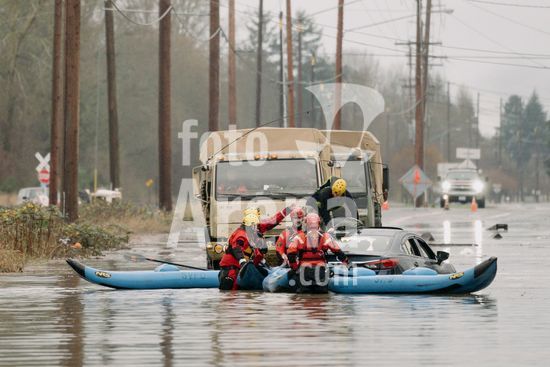 ny121225165314 Members of a regional Swiftwater Rescue Strike Team, deployed from Spokane, help a man whose car was stuck in floodwaters from the Skagit River coming over State Route 20 in Burlington, Wash., on Friday, Dec. 12, 2025. Swamped roads and potential mudslides hindered efforts to assess the damage across storm-ravaged western Washington on Friday, even as more rain was forecast to fall. (Grant Hindsley/The New York Times/Fotoarena)