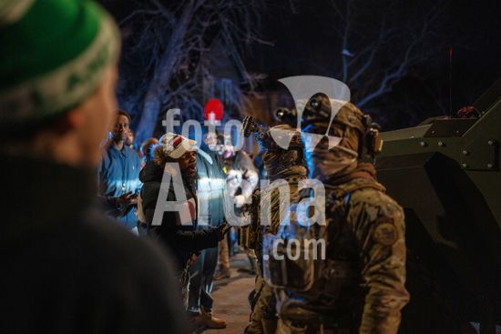 ny230126124111 HEADLINE: In Minneapolis, Tensions Can Ignite on Any Corner at Any TimeCAPTION: Protesters confront federal agents at the location where a man they were attempting to detain was shot in the leg, in Minneapolis, Jan. 14, 2026. Fear and fury can explode on any street corner during this charged time in Minneapolis, any time, any place the muscle of the federal government meets the rage of the citizens who reject its tactics. CREDIT: (Todd Heisler/The New York Times/Fotoarena)