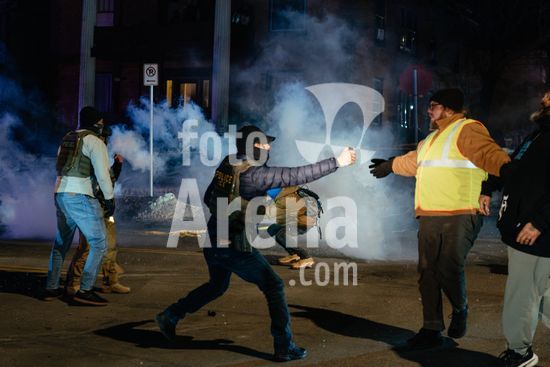 ny130126160711 A man kicks a tear gas canister after federal agents threw tear gas canisters into a crowd of protesters, observers and residents on the street amid an operation in Minneapolis, on Tuesday, Jan. 13, 2026. (David Guttenfelder/The New York Times/Fotoarena)