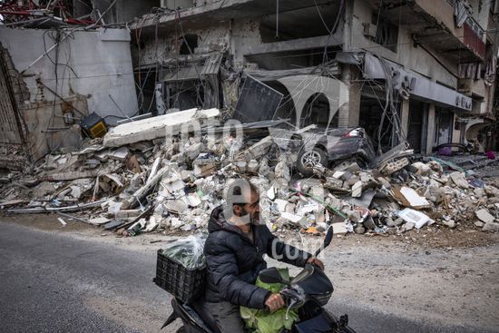 ny270326140614 A man rides a scooter past a building destroyed by Israeli strikes in the southern port city of Tyre, Lebanon, on Friday, March 27, 2026. In Lebanon, the Israeli military issued fresh evacuation orders for Beirut?s densely populated southern outskirts, a Hezbollah stronghold, indicating that airstrikes were imminent. (David Guttenfelder/The New York Times/Fotoarena)