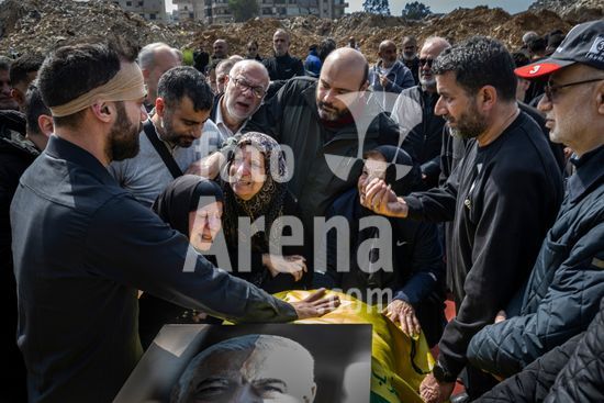 ny200326174311 Relatives of the Lebanese journalist, Mohammad Sherri, who was affilated with Al-Manar, Hezbollah?s media arm, and his wife, Amaal Khalil Sherri, at their funeral at a temporary cemetery in Aamrousiyeh, Lebanon, March 19, 2026. (Diego Ibarra Sánchez/The New York Times/Fotoarena)